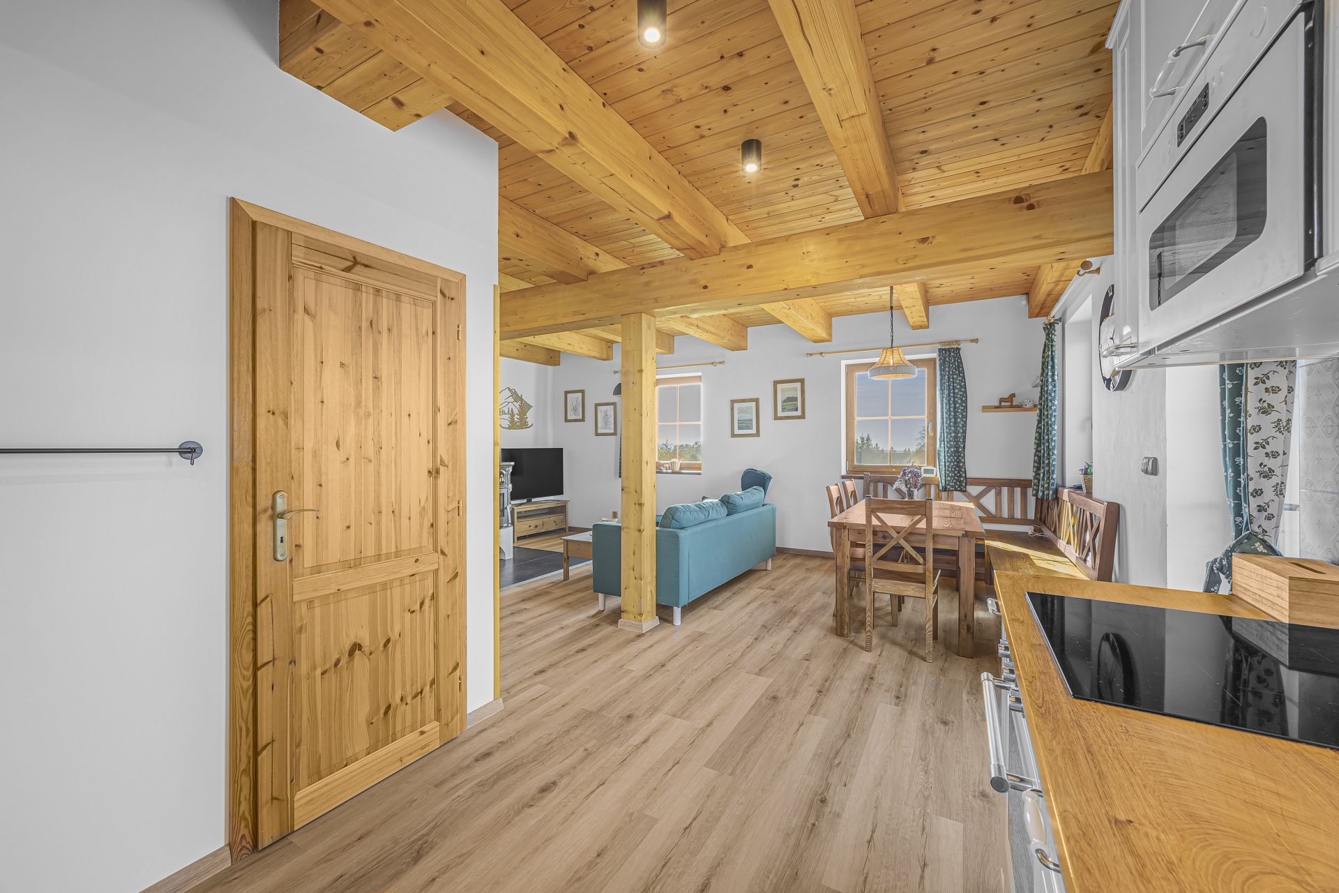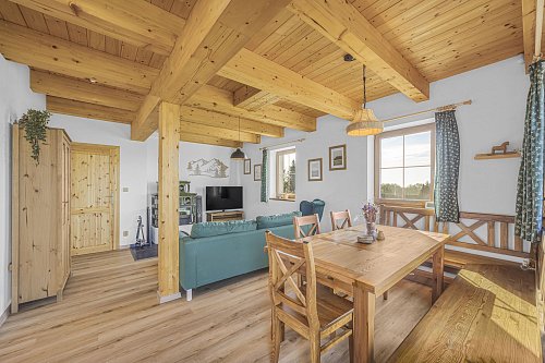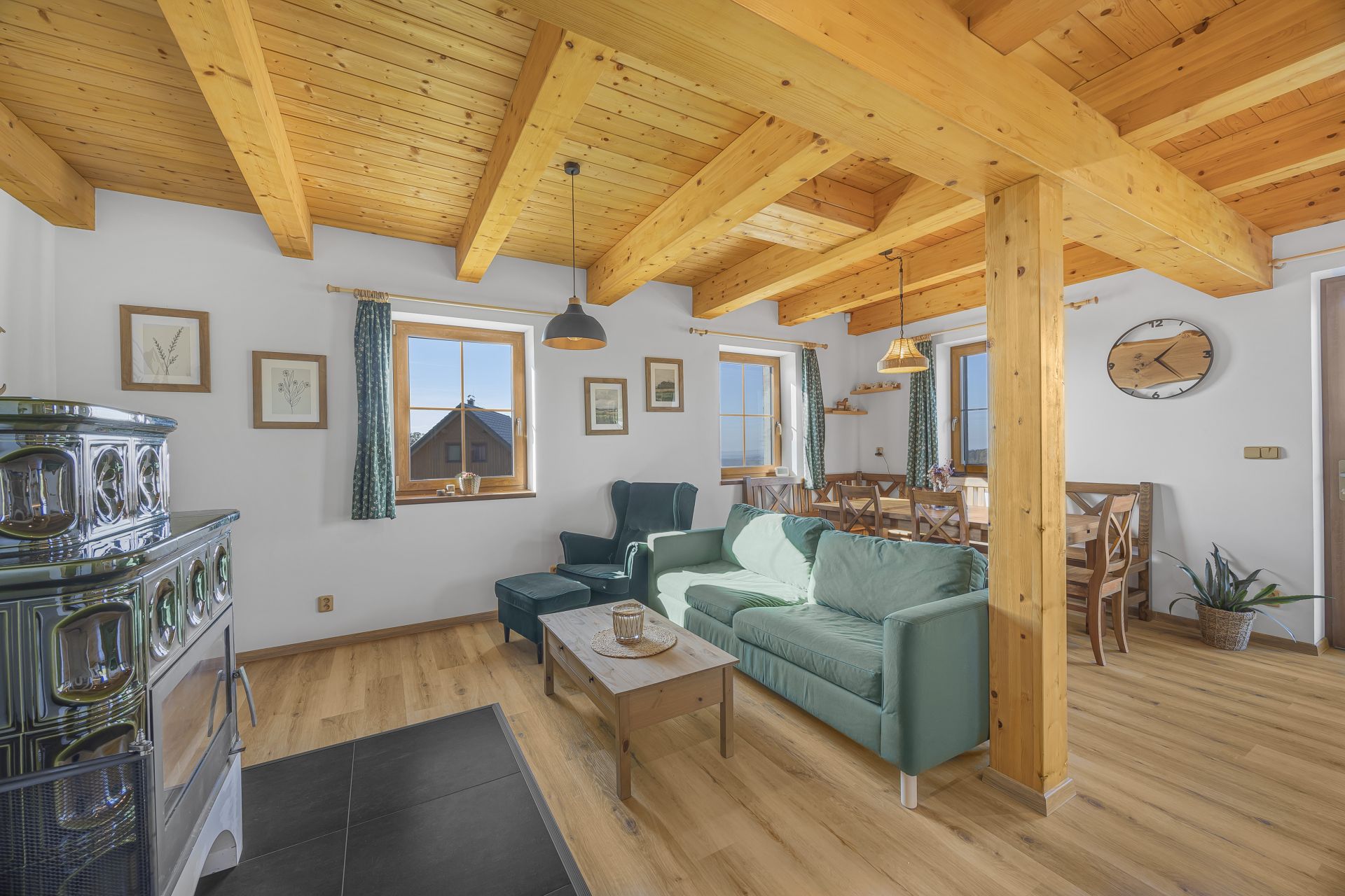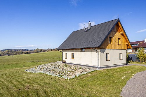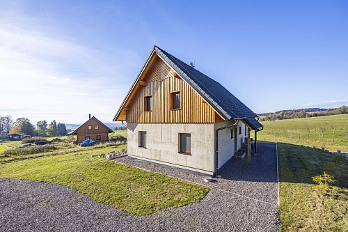 Okna jsou plastová s trojskly a sítěmi proti hmyzu, což zajišťuje klidné a příjemné bydlení. Dům je kompletně zateplený a čeká na finální nátěr fasády podle vkusu nového majitele. Ski areály Říčky a Zdobnice jsou vzdálené pouhých 16 minut autem, což z něj činí ideální místo pro milovníky zimních sportů a přírody.