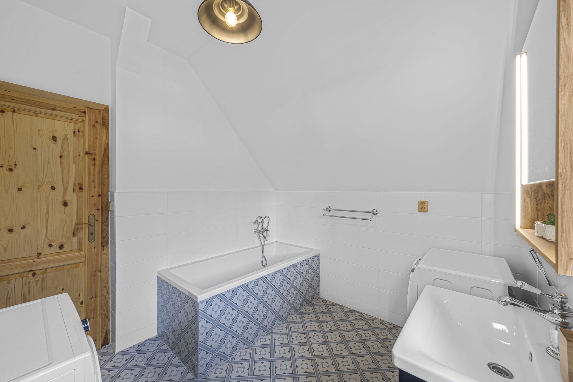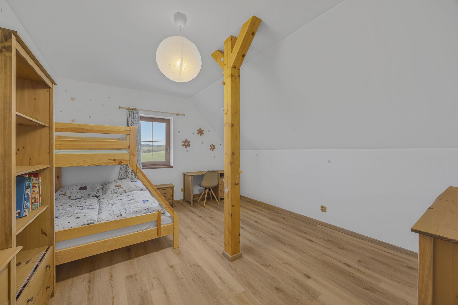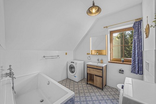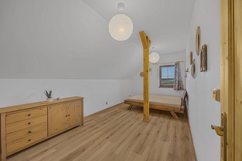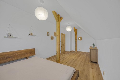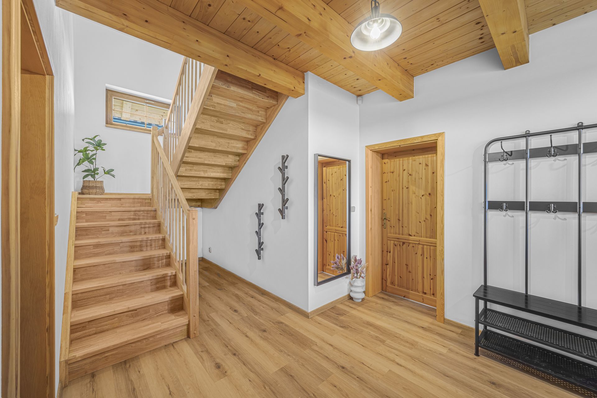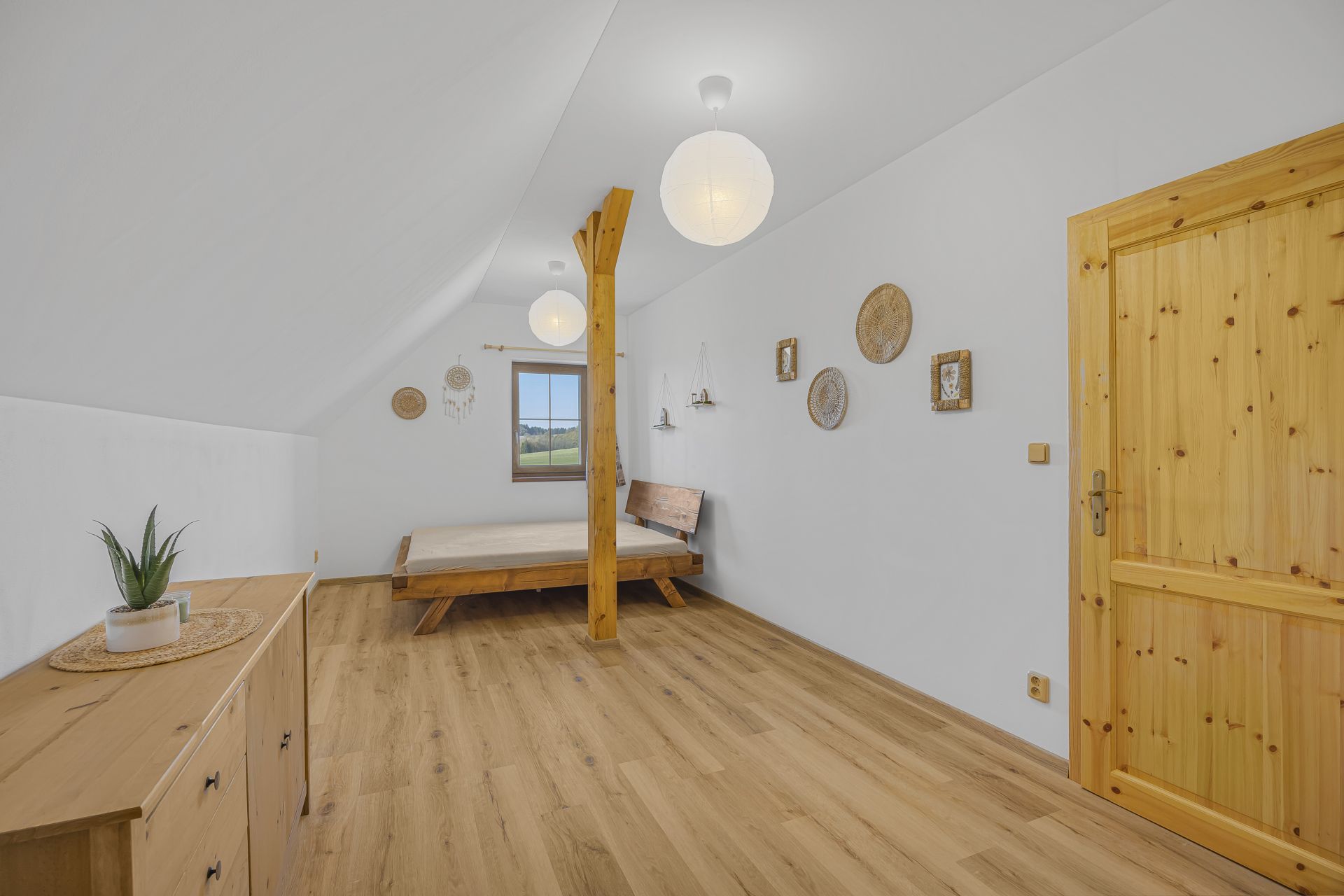 Na pozemku o rozloze 3835 m² naleznete zpevněné parkování a dostatek prostoru pro odpočinek a relaxaci. V domě jsou dvě moderní koupelny, jedna vybavená vanou a druhá se sprchovým koutem, což zajišťuje maximální komfort pro celou rodinu. Podlahy jsou vinylové s podlahovým vytápěním, které je efektivně zajištěno tepelným čerpadlem a kachlovými kamny s výměníkem, což přispívá k příjemné atmosféře v zimních měsících.