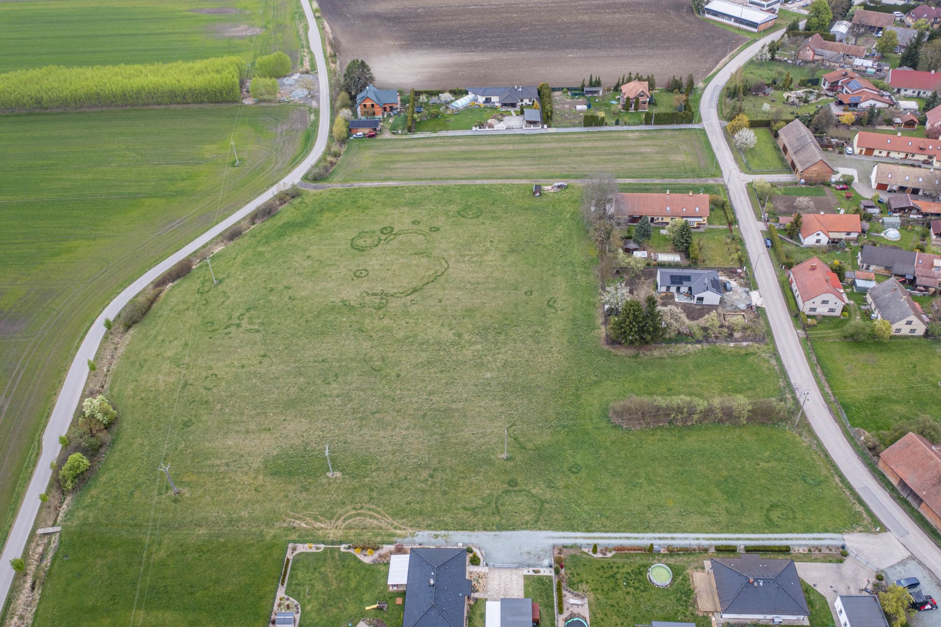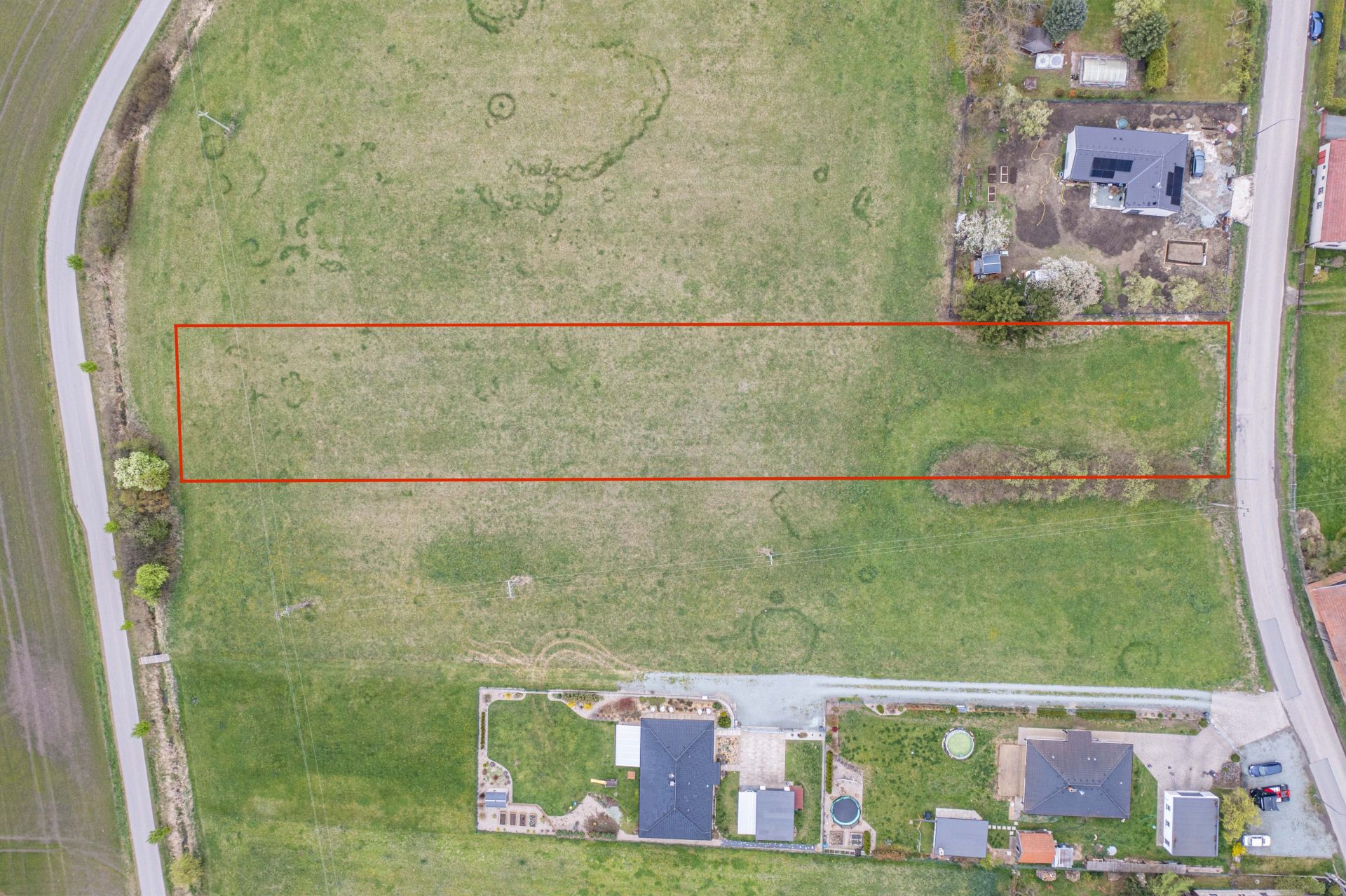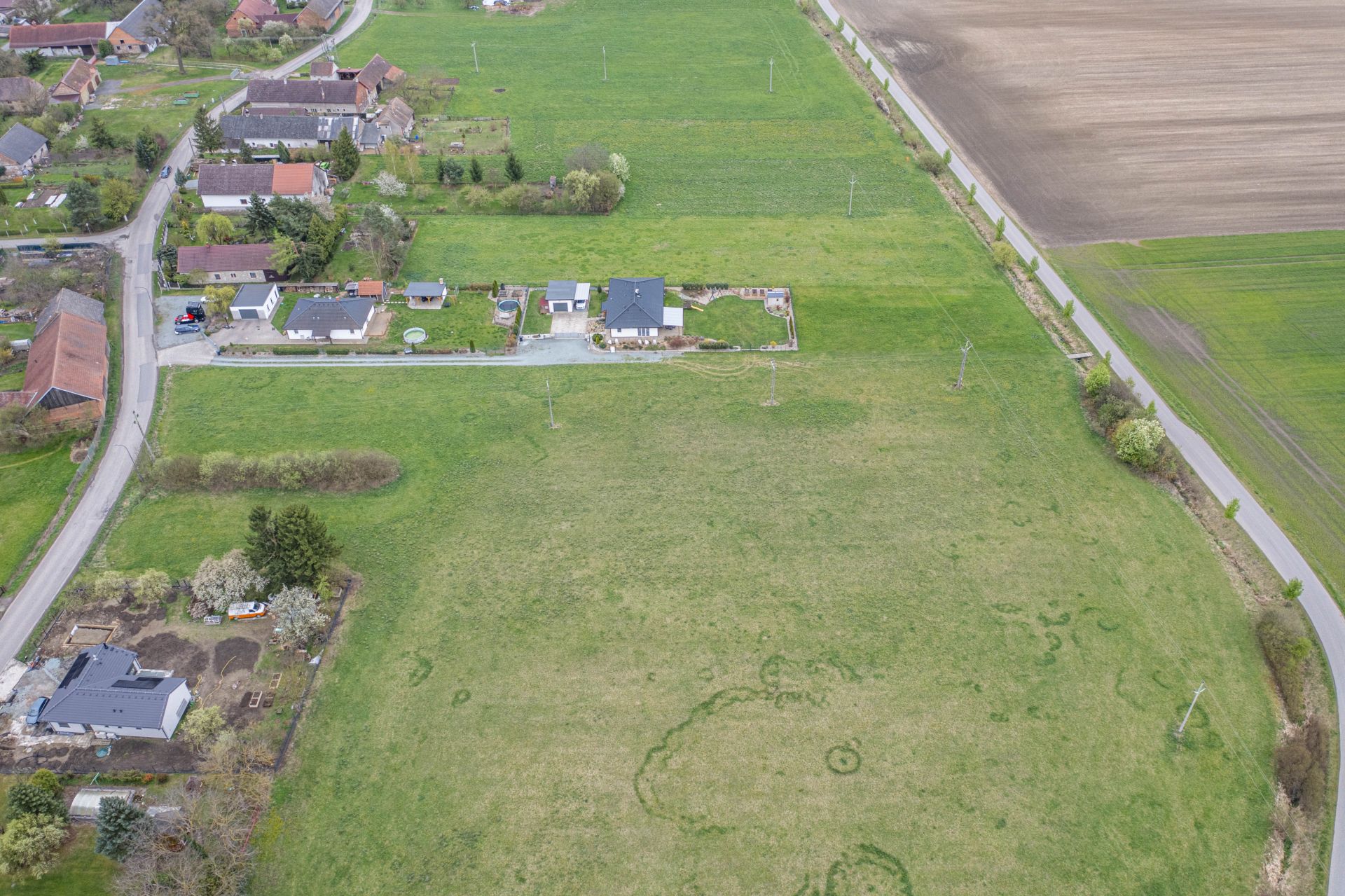 Ačkoliv pozemek v současné chvíli nedisponuje kompletními inženýrskými sítěmi přímo na hranici, jejich dostupnost je vynikající a připojení je snadno realizovatelné. Elektrická přípojka je v dosahu pouhých 35 metrů, zatímco vodovodní a kanalizační řad vede přes silnici ve vzdálenosti do 10 metrů. To představuje minimální náklady a starosti spojené s přivedením potřebných energií a služeb na pozemek.