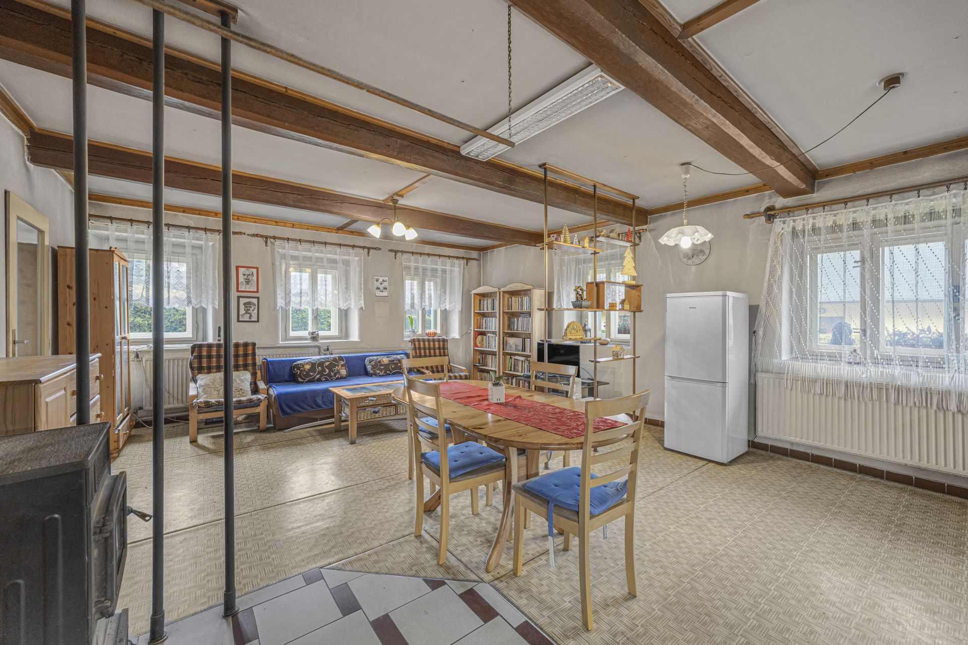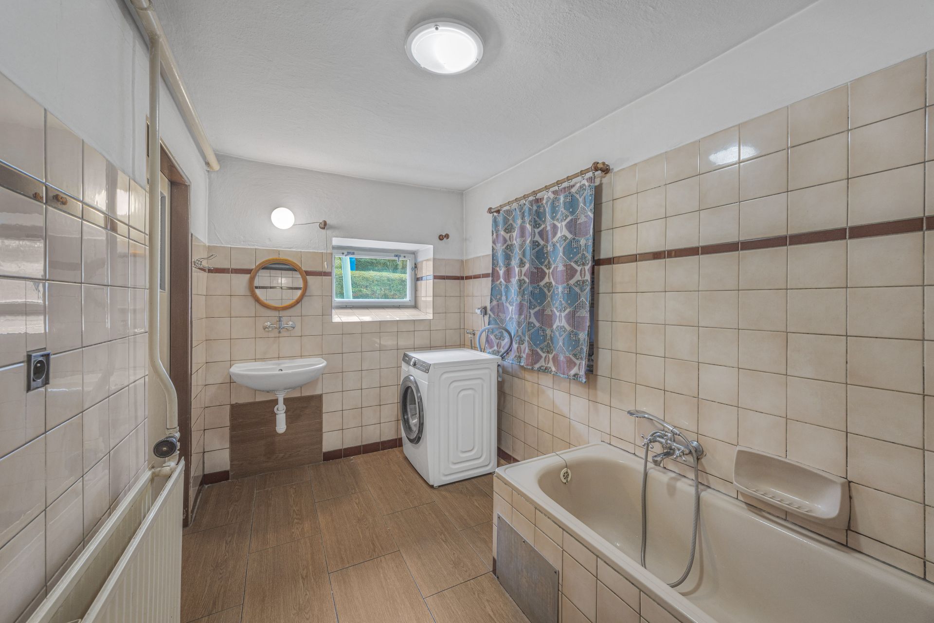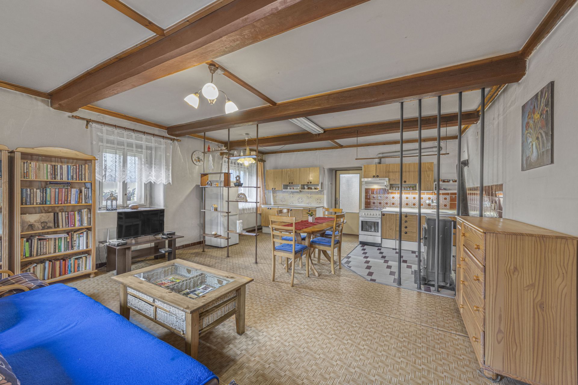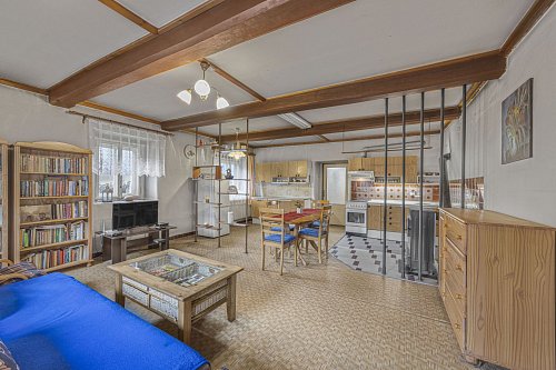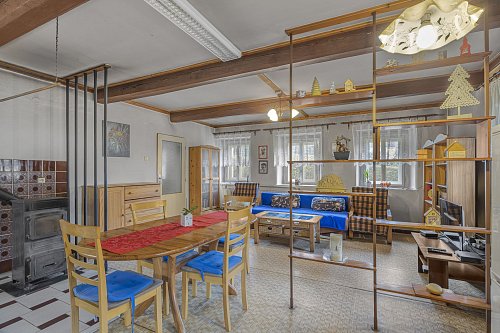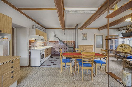 Dům je udržován v dobrém stavu a nabízí celkovou užitnou plochu 187 m2. V současné době je plně obyvatelná přízemní část, kde se nachází prostorný obývací pokoj citlivě propojený s kuchyní a jídelnou, tvořící srdce domova. Dále zde najdete příjemnou ložnici, která poskytuje klidné útočiště pro odpočinek. Koupelna je vybavena vanou, umyvadlem a keramickými obklady, samostatné WC.